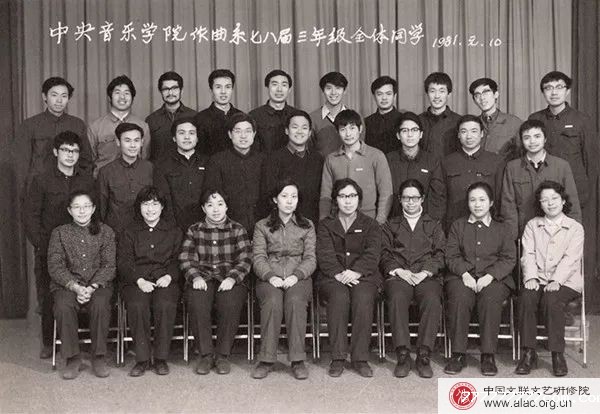 中央音乐学院作曲系1978级合影。叶小纲(第三排右五)、谭盾(第二排右四)、郭文景(第二排右三)。