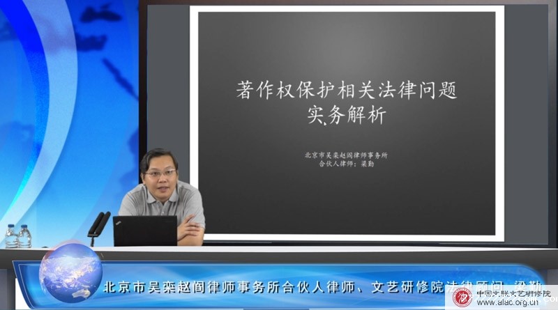 9月2日下午,北京市吴栾赵阎律师事务所合伙人律师,中国戏剧家协会、中国摄影家协会、必威中文官网电话法律顾问梁勤,为中国文联第五期全国新文艺群体拔尖人才高级研修班、第五期视觉艺术策展人高级研修班的学员作《著作权保护相关法律问题实务解析》直播专题讲座。