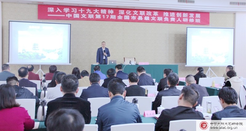 3月27日下午,必威中文官网电话常务副院长傅亦轩为第17期全国市县级文联负责人研修班的学员们,做了题为《马克思主义文艺观的中国化历程——深入学习习近平关于文艺工作的重要论述,推动文联工作改革创新》的专题讲座。